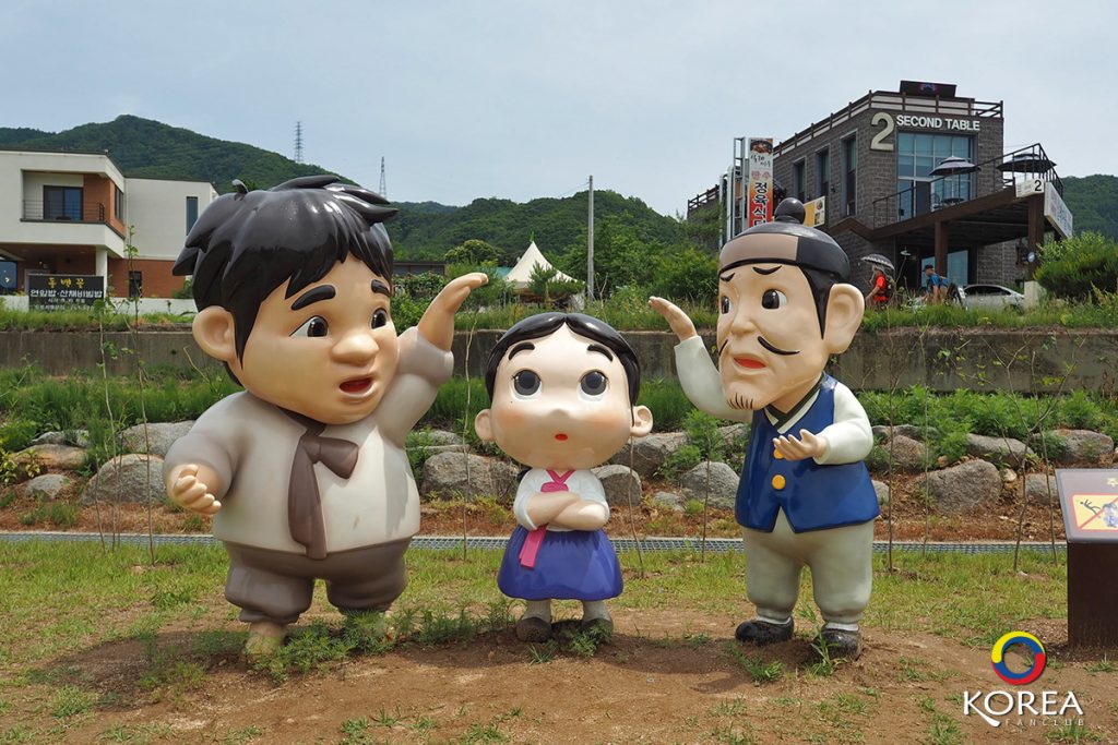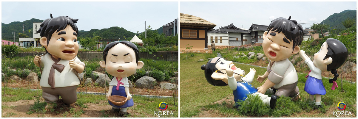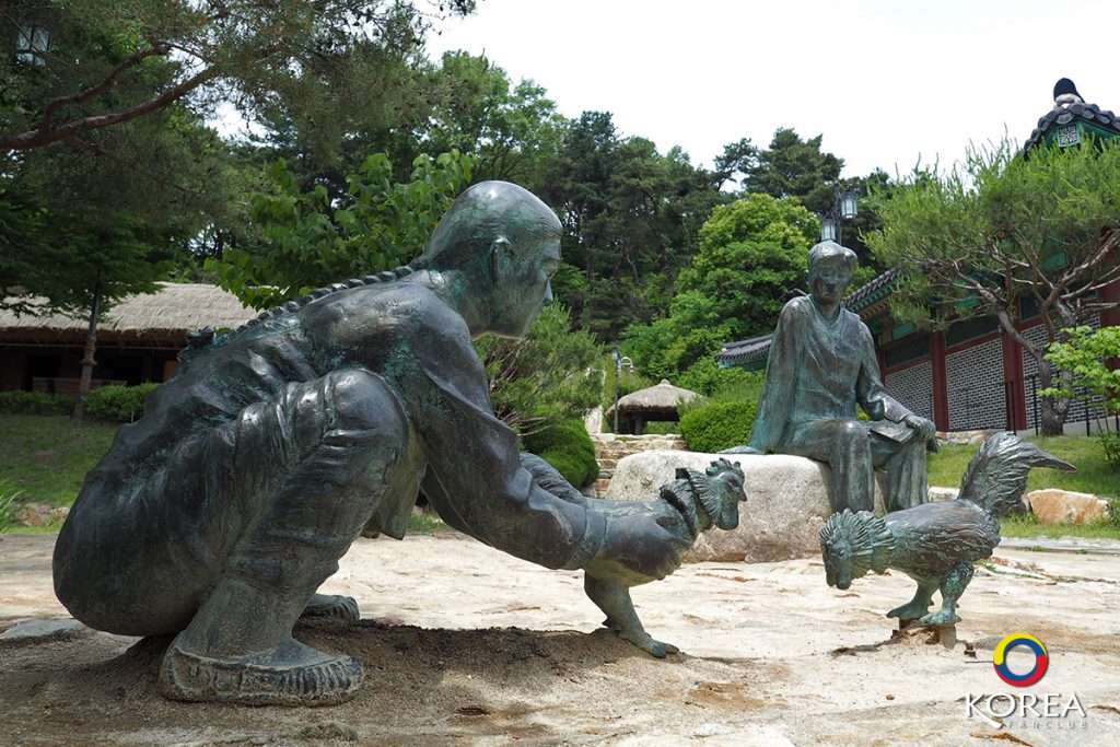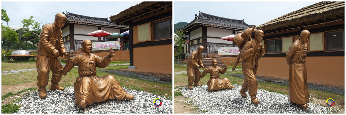 ภาครัฐยังส่งเสริมให้สถานที่แห่งนี้เป็นแหล่งท่องเที่ยวของหมู่บ้าน ภายในบริเวณมีการจัดแสดงรูปหล่อโลหะ จำลองฉาก ต่างๆ จากวรรณกรรมหลายเรื่อง คนเกาหลีคงจะคุ้นเคยกันดี แต่กับลุงเด้งป้าไก่ นี่ไม่รู้เลยครับ ว่าฉากนี้ มาจากเรื่องอะไร