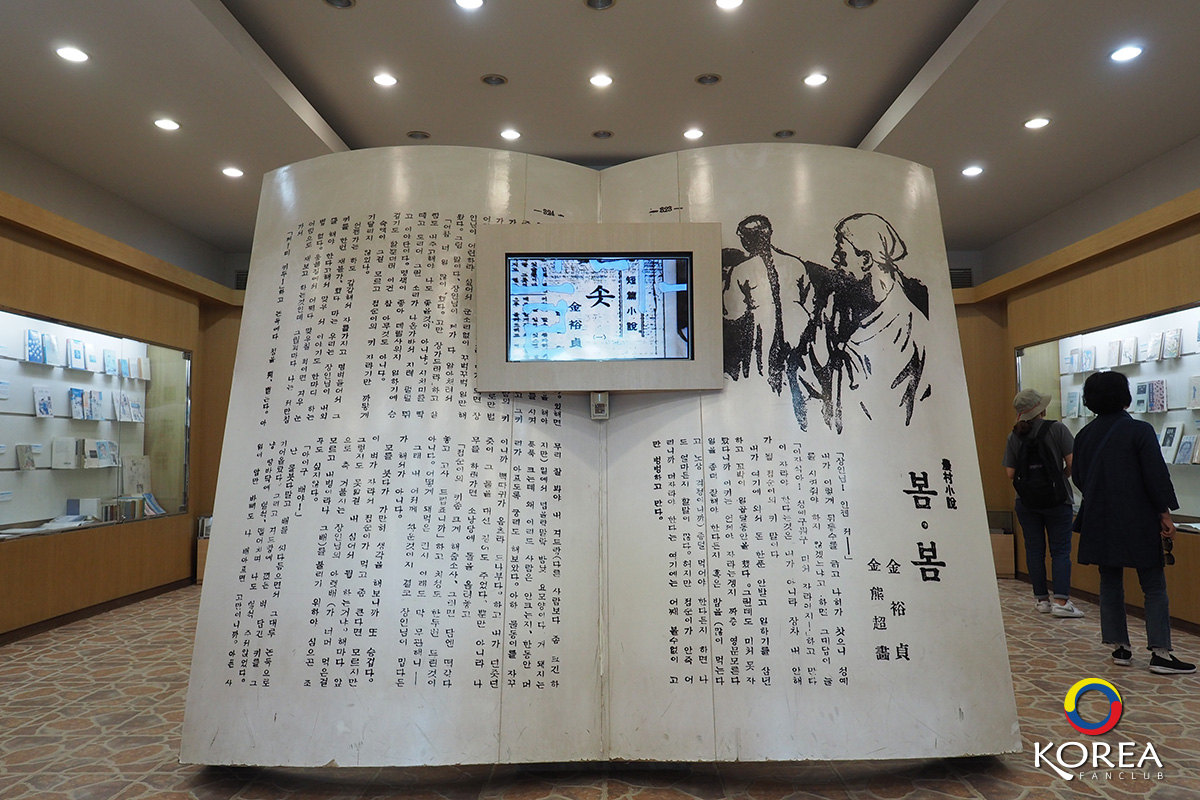 หมู่บ้านวรรณกรรม 김유정 문학촌 สร้างอยู่ในบริเวณบ้านเกิดของนักเขียน เพื่อเป็นอนุสรณ์สถานและยังเป็นแรงบันดาลใจให้กับนักเขียนท้องถิ่นรุ่นใหม่ ที่จะเติบโตขึ้นมาในสายวรรณกรรมเรื่องสั้นของเกาหลี
