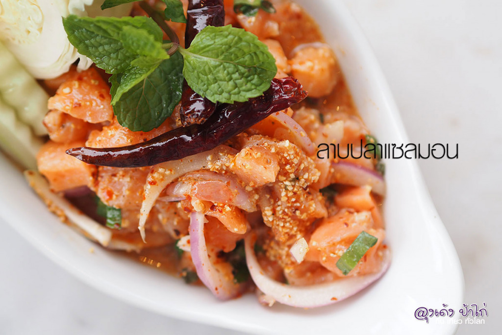 ลาบปลาแซลมอน ... รสชาติผู้ดีมากๆ ไม่ได้เปรี้ยวจี้ หรือ เผ็ดจัด - รสชาติกลมกล่อม - ตักกินเปล่าๆ ได้เลย
