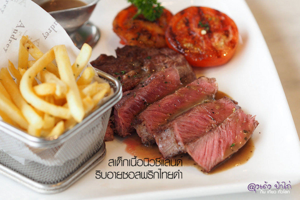 สเต็กเนื้อนิวซีแลนด์ ริบอาย ซอสพริกไทยดำ จานนี้เรียกว่าสั่งกันทุกคน จานนี้ราคาในเมนู 590.- บอกเลยว่า Audrey บุฟเฟ่ต์ ใจถึงมากๆ คิดดู กิน 2 จานก็คุ้มแล้ว!