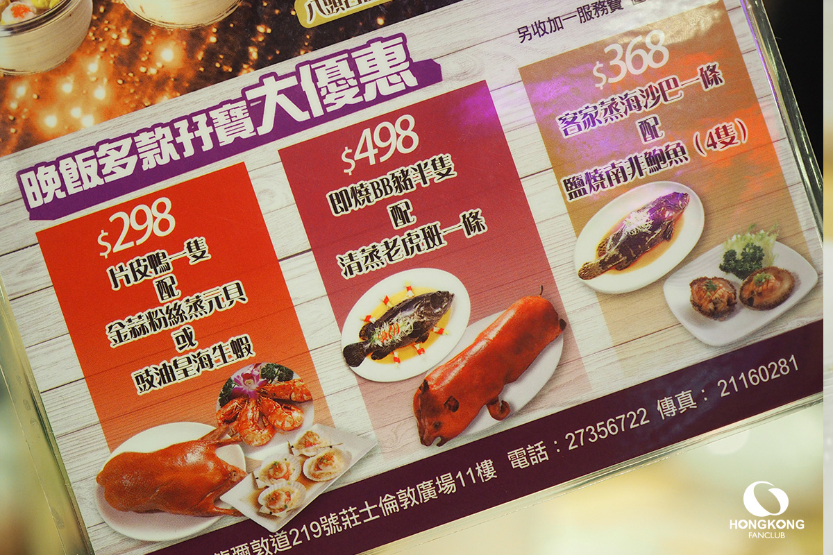 ร้านนี้เค้ามีโปรโมชั่น ยิบย่อย ด้วยนะ แต่เป็นภาษาจีน อันนี้ต้องลองถามเค้าดูเป็นภาษาอังกฤษ อย่าง เมนูแรก ก็เห็นหลายโต๊ะสั่งมากินกันนะ ราคา HK$ 298 เหรียญ ได้ เป็ดปักกิ่ง 1 ตัว + เมนูกุ้ง 4 ตัว หรือ หอยเชล์ 4 ตัว - ราคาประมาณนี้ ก็จัดว่าถูกมากนะครับ