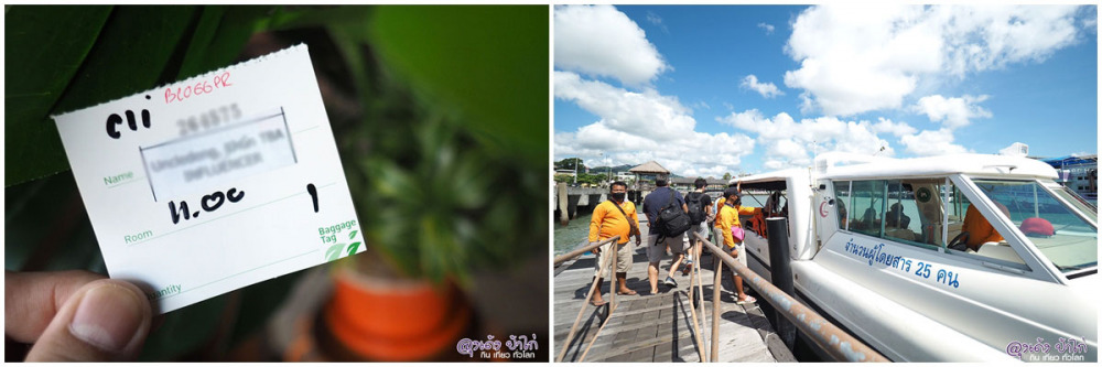 ท่าเรือ อ่าวพร้าว บ้านเพTag รับกระเป๋า ระบุชื่อ และ หมายเลข นำส่งกระเป๋าเดินทาง แสดงหลักฐานนี้ ที่ Lobby ตอน Check-in ที่รีสอร์ท
