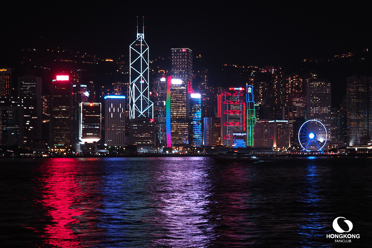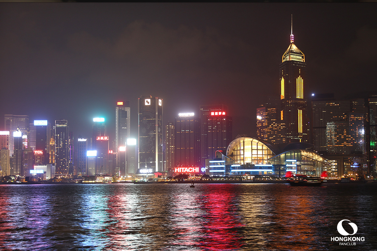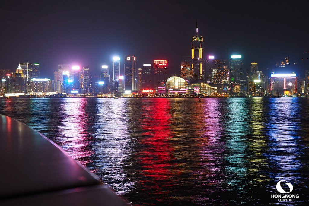 ช่วงค่ำ ... ตึกระฟ้าต่างๆ ฝั่งฮ่องกง เปิดไฟ สวยงามมาก และสะท้อนกับแผ่นน้ำ เป็นลำแสงสวยงาม