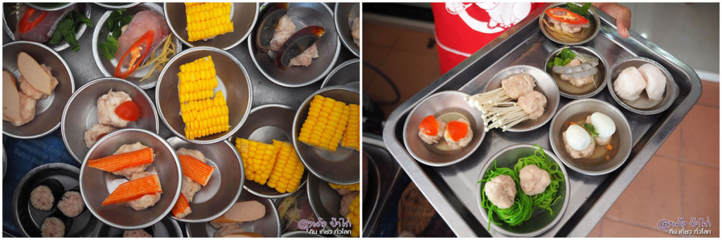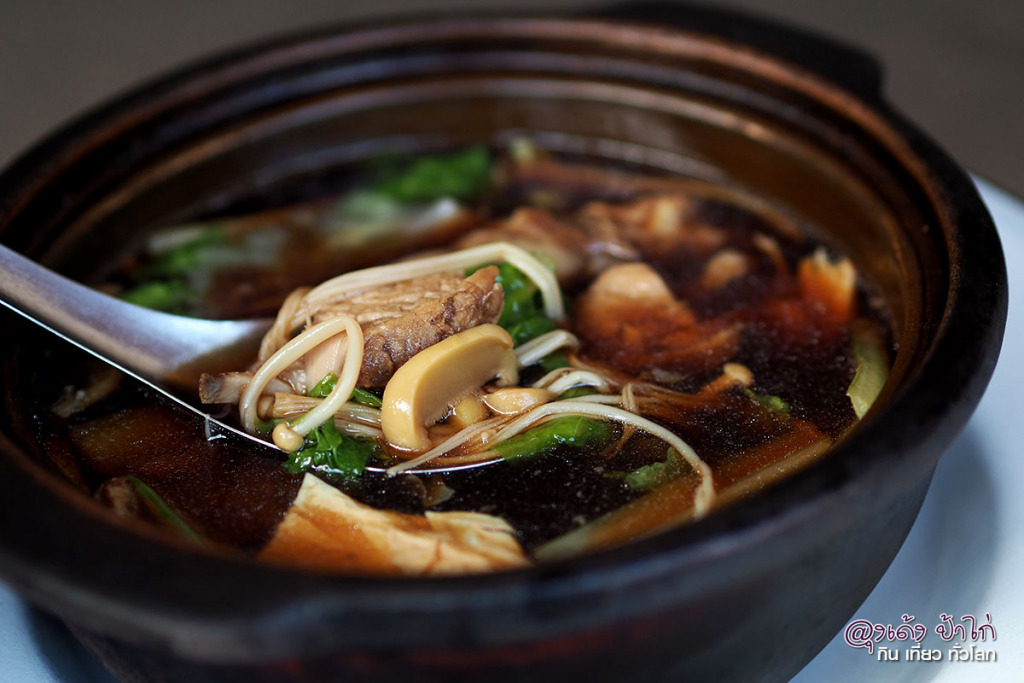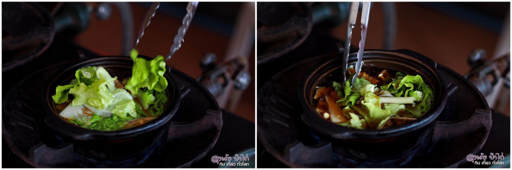 หลังจากที่เราสั่งแล้ว ก็จะเตรียมเครื่องแล้วปรุงกันหน้าร้าน เสิร์ฟในหม้อดินเผา ร้อนๆ