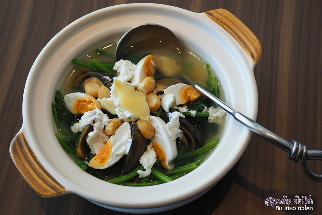 ซุปผักปวยเล้งไข่เยี่ยวม้า ไข่เค็มหม้อดิน : 390 บาท