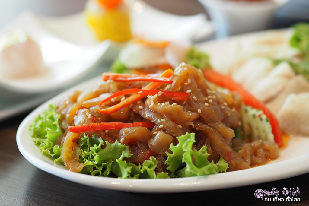 ความโดดเด่นอยู่ที่เนื้อแมงกะพรุน กรุบกรอบ เด้งๆ กับเครื่องปรุงและน้ำมันงา ที่สั่งตรงจากฮ่องกง ต้องมาลองครับ แล้วจะรู้ว่าอาหารที่ใช้วัตถุดิบชั้นดีอร่อยแบบนี้