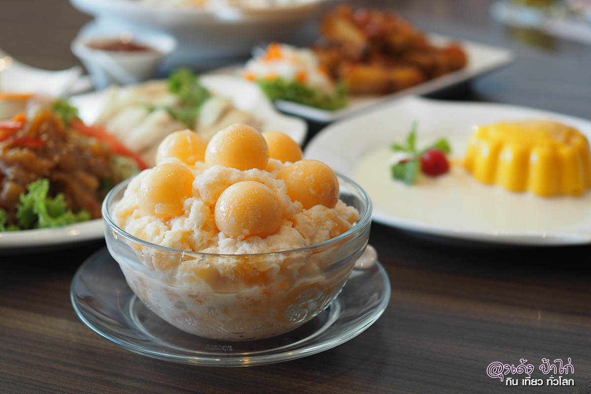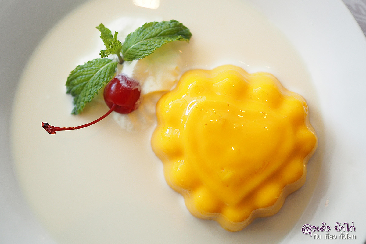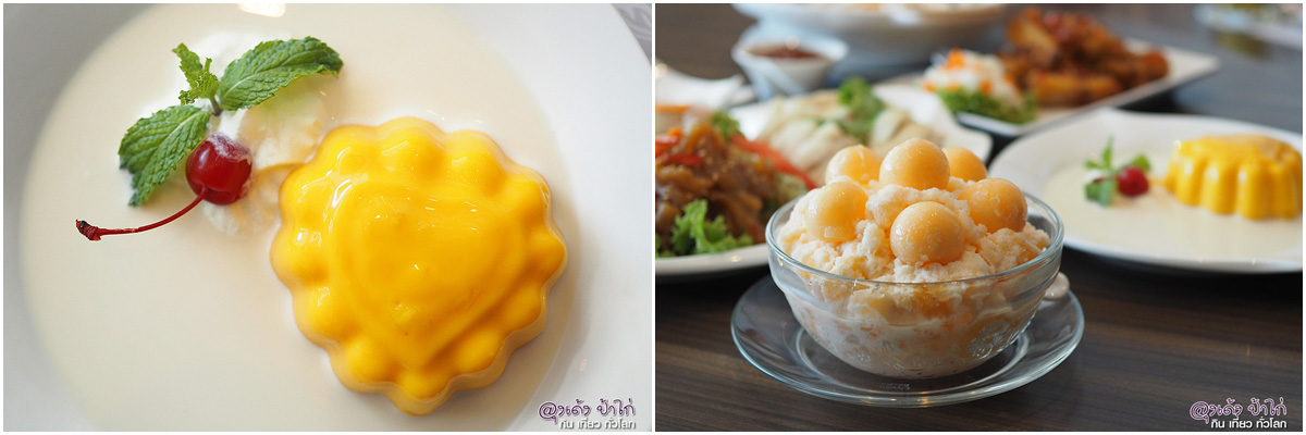 ปิดท้ายมื้อด้วยของหวาน 2 ชนิด ที่มีความเป็น ฮ่องก๊ง...ฮ่องกง ประเดิมด้วย มะม่วงพุดดิ้ง Mango Pudding ราคา 80 บาท ส่วนผสมหลักคือ มะม่วงน้ำดอกไม้สดนำไปปั่น ผสมกับเนื้อมะม่วงหั่นลูกเต๋า มาทำเป็นพุดดิ้ง ราดนมสด และวิปครีม และ สาคูแคนตาลูป ในราคา 85 บาท นี่คือเมนูขนมหวานที่เป็น ซิกเนเจอร์ของทางร้านที่ไม่ควรพลาด