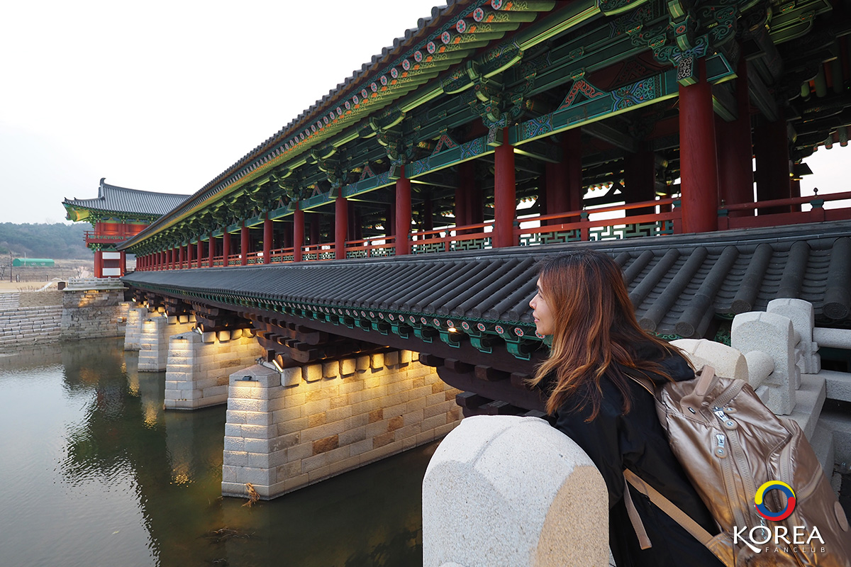 สะพานโบราณ Woljeonggyo จัดได้ว่าเป็นสะพานที่สวยที่สุดแห่งหนึ่งของประเทศเกาหลีใต้ ตั้งอยู่ไม่ไกลจาก สถานีรถไฟ Gyeongju ทอดยาวอยู่บน แม่น้ำ Namcheon ติดกับหมู่บ้านโบราณ เคียวโชน (Gyochon Traditional Village)