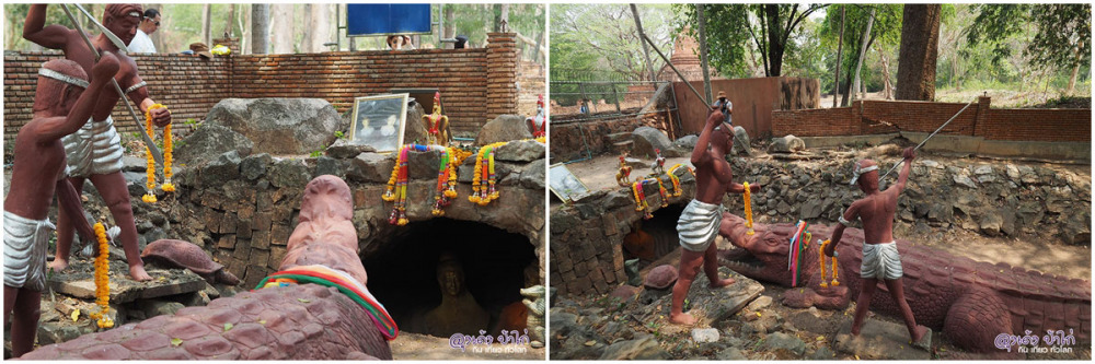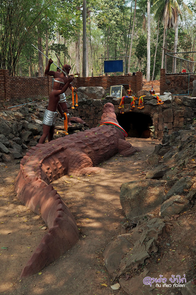 ปัจจุบัน เราเดินเข้าไปไมาได้แล้วนะครับ - ดินพังทลายลงมาหมดแล้ว ทางจังหวัดได้สร้างรูปปั้นไกรทองและชาละวันไว้ที่บริเวณปากถ้ำ