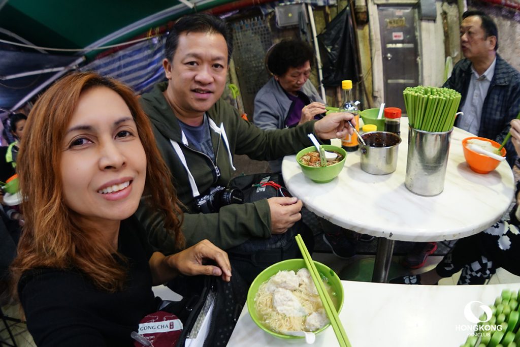 บะหมี่เกี๊ยวกุ้งฮ่องกง ราคาประหยัด ย่าน มงก๊ก ลุงเด้งป้าไก่ ยกให้ ร้าน เหว่ง หยืน หมี่น ก๊า (榮園麵家) หนึ่งใน ร้านบะหมี่ ฮ่องกง ราคาประหยัด กินกันมานานกว่า 10 ปีแล้ว ทั้งร้านมีเมนูให้เลือก 8-9 เมนู สั่งง่าย หน้าร้านมีภาพ เอามือถือถ่ายรูปเลย ว่าจะกินอะไร ระบุราคาชัดเจน ตอนนี้พนักงานในร้านสื่อสารภาษาไทยได้บ้างแล้ว
