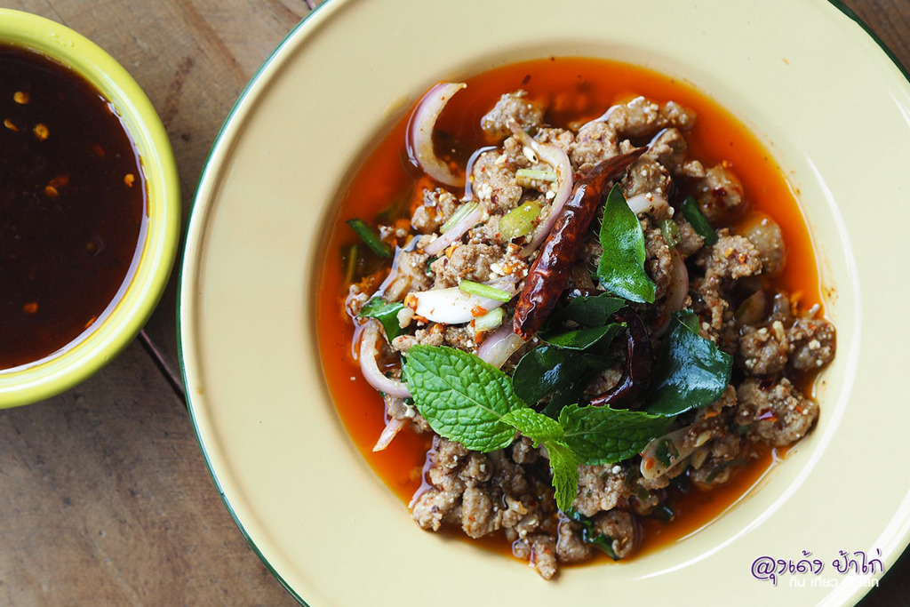 ลาบเป็ด 70 บาท - ทีเด็ดของจานนี้ อยู่ที่ น้ำมันเป็ด ที่ได้จากการนำไปคั่ว ให้ได้น้ำมันเป็ดหอมๆ ตอนทำลาบ น้ำมันเป็ดผสมกับพริก ได้ความหอมละมุน ที่มากับ รสชาติแซ่บแบบอีสานบ้านเฮา