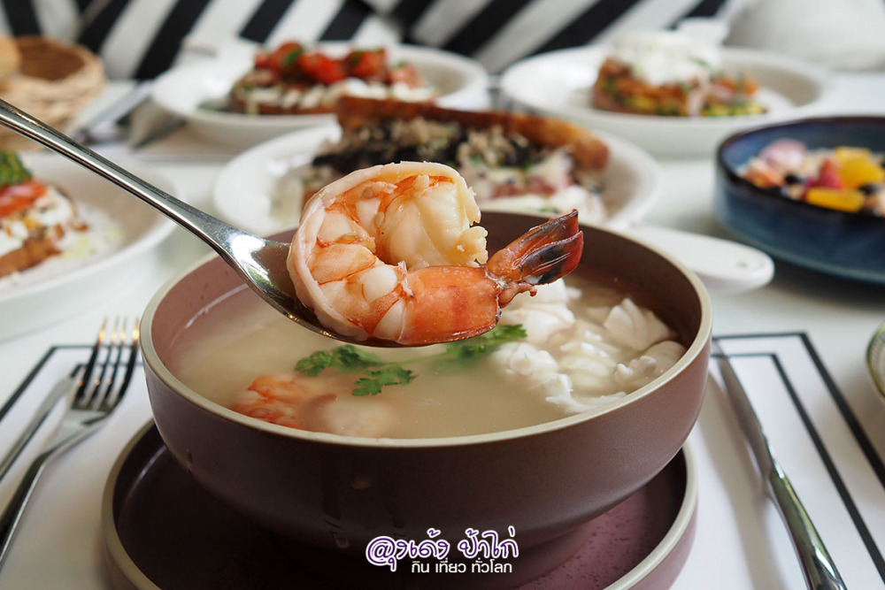 ข้าวต้มทะเล สำหรับมื้อที่เพื่อนๆ อยากกินซุปใสๆ ร้อนๆ แบบอาหารเช้าไทยๆ ข้าวต้มทะเล ด้วยนี้มีดีที่ กุ้งสด ตัวโตๆ แบบเต็มๆ คำ [ ในถ้วยนี้ มีทั้ง กุ้งสด เนื้อปลา และ หมึก ]