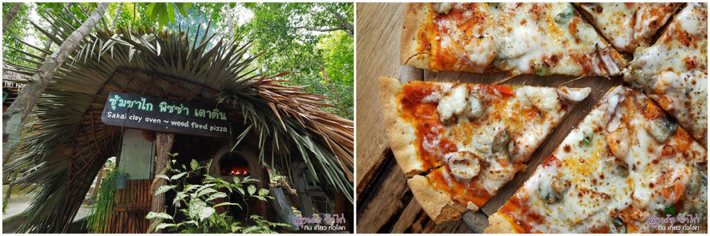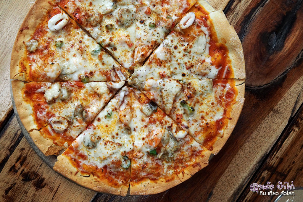 พิซซ่า เตาถ่าน อีก 1 เมนูแนะนำ ความโดดเด่นของพิซซ่า ที่นี่คือ นวดแป้งเอง อบเตาดิน ฟืนไม้ ได้ความกรุบกรอบ และหอมกว่าเตาอบทั่วไป