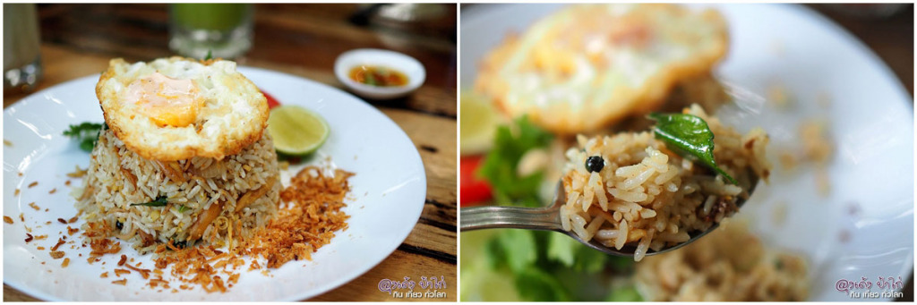 ข้าวผัดสมุนไพร + ไข่ดาว จานนี้ 90 บาท หอมสมุนไพรมากๆ จานนี้เราจะได้ความหมอจากกระชาย ใบมะหรูด พริกไทยดำสด หอมเจียว และอื่นๆ