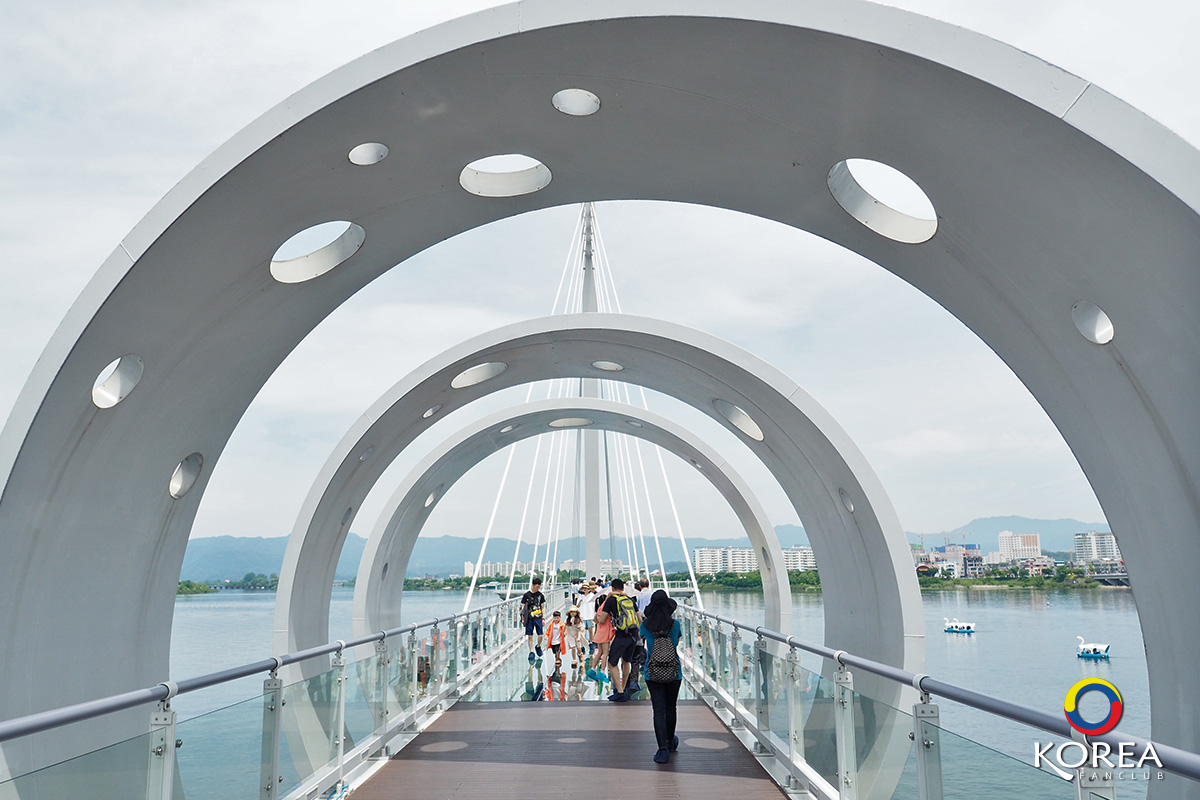สะพานแห่งนี้ก่อสร้างเสร็จ ปี 2016 และเปิดตัวว่าเป็น สะพานกระจกใส Soyanggang Sky Walk ที่มีความยาวทีสุดในเกาหลีใต้ มีความยาว 156 เมตร ตั้งอยู่เหนือทะเลสาบเอียมโฮ (Uiamho Lake)