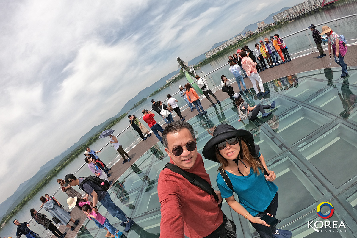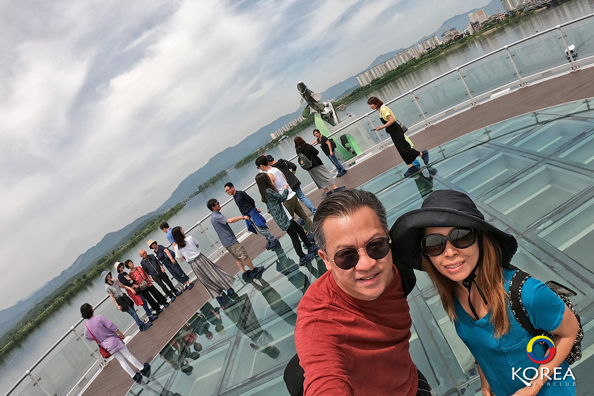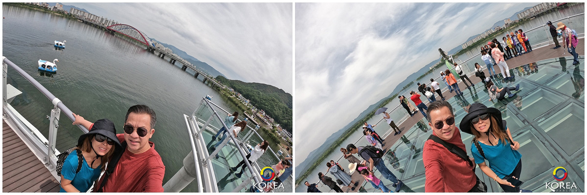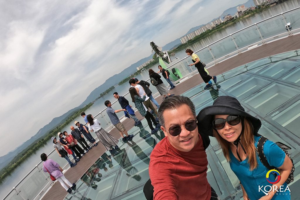 มาถึงแล้ว ... ถ่ายรูปคู่เก็บไว้เป็นที่ระลึกกันครับ ว่า ลุงเด้งป้าไก่ มาถึงแล้ว โซยางคัง Soyanggang Sky Walk เมือง ชุนชอน