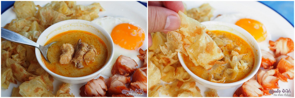 ชุดนี้ น้ำแกงรสชาตินุ่มๆ หยิบโรตีจุ่มในน้ำแกง แล้วหยิบเข้าปากได้เลย