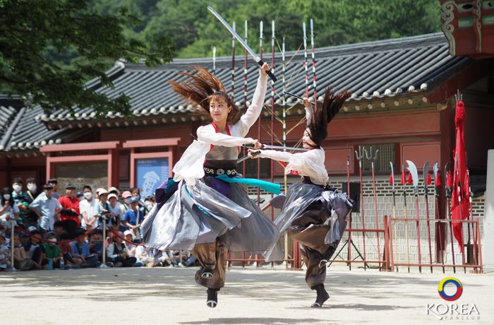 The 24 Martial Arts were practiced by the soldiers of the outer military unit of Jangyongyeong, the most elite military troop during the Joseon Dynasty. Soldiers stationed at the northern and southern military camps of Hwaseong Haenggung Palace practiced these techniques to effectively guard the palace. It is a considered as a significant intangible heritage because of its great historical, artistic, and athletic values. With the restoration of Hwaseong Haenggung Palace, a regular event is being held to demonstrate the 24 Martial Arts.