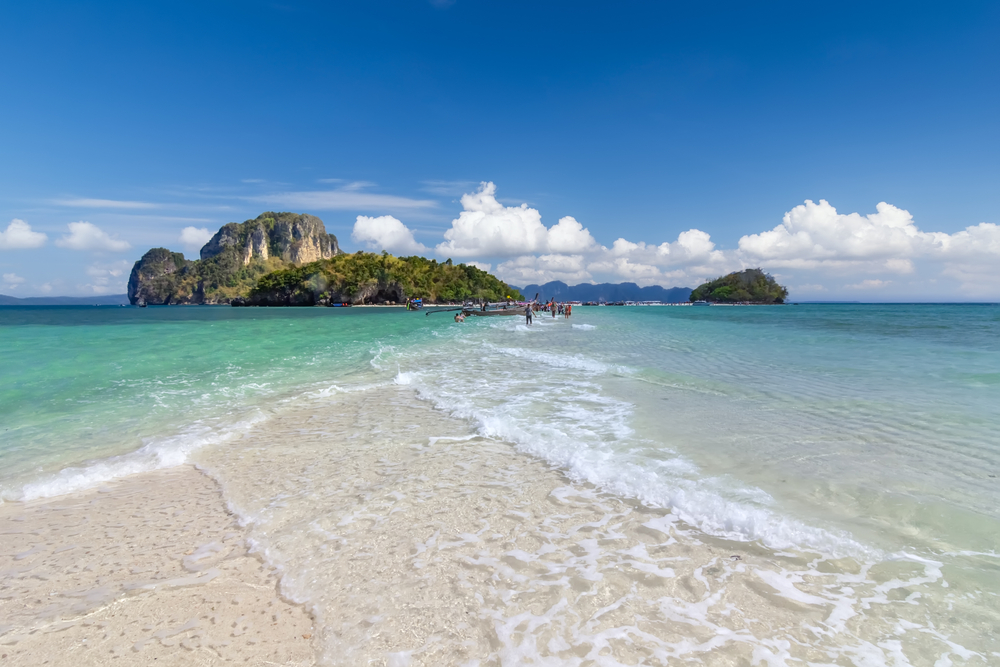 ทะเลแหวก หนึ่งในสถานที่ Unseen Thailand ของกระบี่ซึ่งไม่ควรพลาด เพราะเป็นหนึ่งในพิกัดซิกเนเจอร์ของเมืองนี้เลยก็ว่าได้ ทะเลแหวกเป็นปรากฏการณ์ทางธรรมชาติที่น่าตื่นตาตื่นใจ เนื่องจากเป็นสันทรายที่กระแสน้ำและคลื่นลมพัดมาทับถมอยู่กลางทะเลจนกลายเป็นสันดอน เวลาน้ำลงจะเห็นเป็นทางสีขาวทอดตัวยาวเชื่อมเกาะ 3 เกาะ คือเกาะไก่ เกาะหม้อ และเกาะทับเข้าไว้ด้วยกัน การนั่งเรือมาเล่นน้ำหรือนอนอาบแดดที่สันทรายกลางทะเลแห่งนี้ จึงเป็นอีกสิ่งที่ไม่ควรพลาดเลยละ