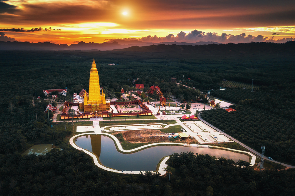 สายบุญที่มากระบี่ควรต้องปักหมุดที่นี่เอาไว้เช่นกัน เพราะเป็นวัดสุดอลังการที่เต็มไปด้วยรูปแบบสถาปัตยกรรมที่น่าตื่นตา เริ่มจากการเป็นวัดซึ่งสร้างในพื้นที่กว่าร้อยไร่ ตามมาด้วยไฮไลท์อย่างพระมหาธาตุเจดีย์ขนาดใหญ่ความสูงราว 95 เมตรซึ่งงดงามแปลกตาทั้งด้านนอกและด้านใน รอบๆ วัดยังมีจุดเด่นๆ อีกหลายแห่งให้ได้แวะกราบแวะชมกัน เชื่อว่าสายบุญต้องแฮปปี้กันแบบจุกๆ ไปเลยละ