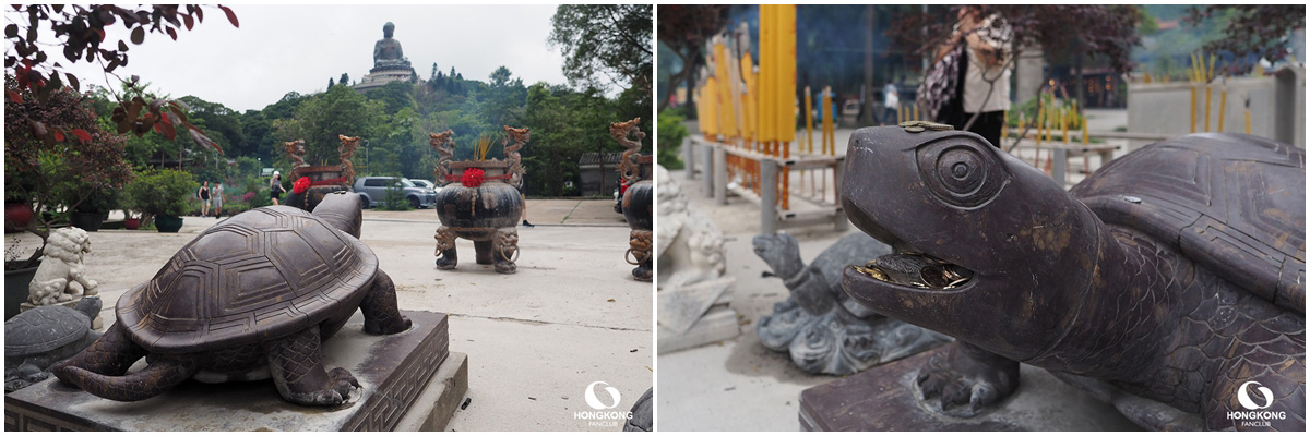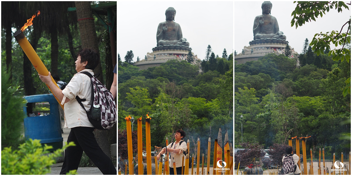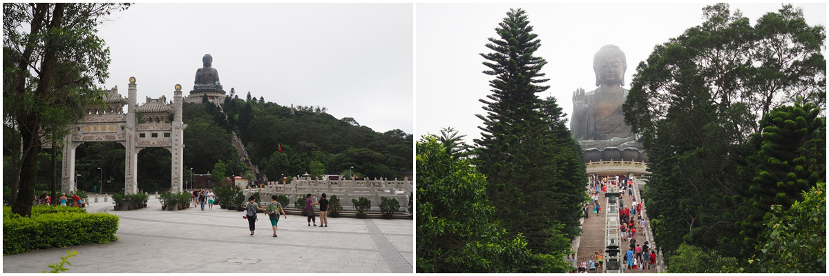 พระพุทธรูปเทียนถาน หรือ พระใหญ่นองปิง เป็นพระศักดิ์สิทธิ์อันดับต้นๆ ของฮ่องกง : การเดินทางมาสักการะพระใหญ่แห่งนี้ ง่ายที่สุดก็คือการนั่ง กระเช้านองปิง ขึ้นมานี่แหละครับ การเดินขึ้นไปชมวิวด้านบนใหญ่ฐานองค์พระต้องเดินขึ้นบันได 268 ขั้น (เหนื่อยพอสมควร) แต่วิว และบรรยากาศบนนี้ก็สุดอลังการงานสร้างจริงๆ