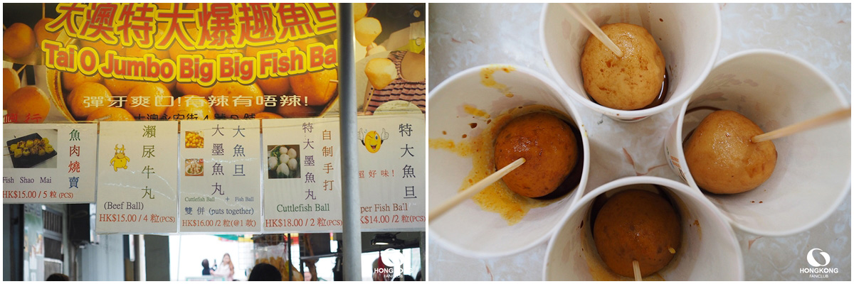 ลูกชิ้นแกงเดือด เป็นหนึ่งในของกินเล่นของคนฮ่องกง และที่ หมู่บ้าน Tai O จะมีร้านอร่อยชื่อว่า " Tai O Jumbo Big Fish Ball" ร้านอยู่หน้าทางเข้าหมู่บ้าน ยังไงก็ต้องเดินผ่านร้านนี้กันทุกคน "รับรองว่าหาไม่ยาก" ลูกค้าเยอะตลอดวัน เมนูแนะนำก็คือ ลูกชิ้นปลาลูกยักษ์ เนื้อเด้งแน่นมาก ทานร้อน ๆ ระวังลวกปากด้วยนะครับ