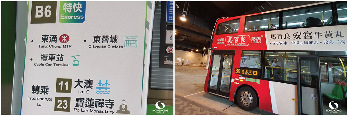 สถานีปลายทาง HZMB Bridge ฝั่งฮ่องกง : ออกมาก็นั่งรถเมล์สาย B6 ไปลง Tung Chung จากนั้นเดินไปขึ้น กระเช้านองปิง หรือ ไป ช้อปที่ Citygate ได้เลย
