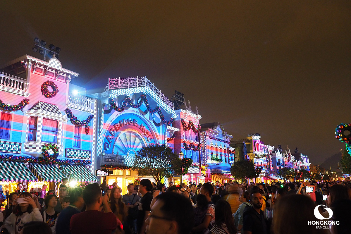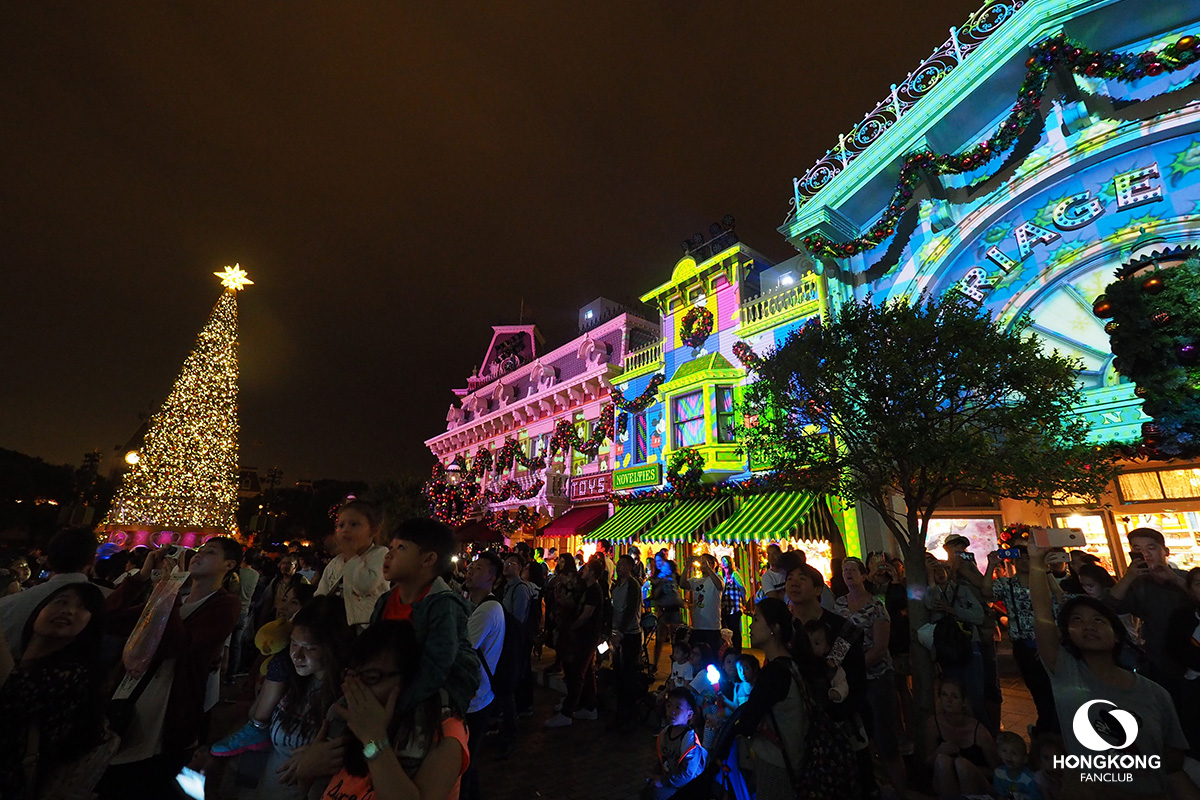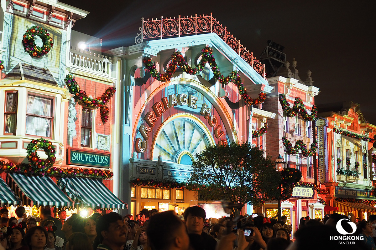 บรรยากาศต้อนรับคริสมาสต์ ที่ ฮ่องกงดิสนีย์แลนด์ บริเวณถนน Main Street, U.S.A. ได้รับการเนรมิตรให้เป็นถนนเห่งการเฉลิมฉลอง และมีกิจกรรมเกิดขึ้นมามาย