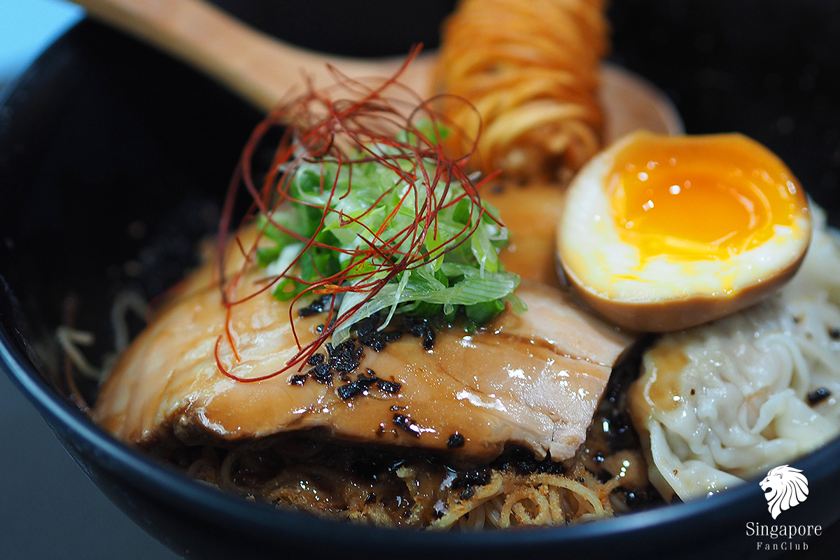 ร้านนี้เป็นร้านบะหมี่ลูกผสม เจ้าของร้านให้คำนิยามว่าเป็น “Singapore-Style Ramen” หรือ ราเมนสไตล์สิงคโปร์