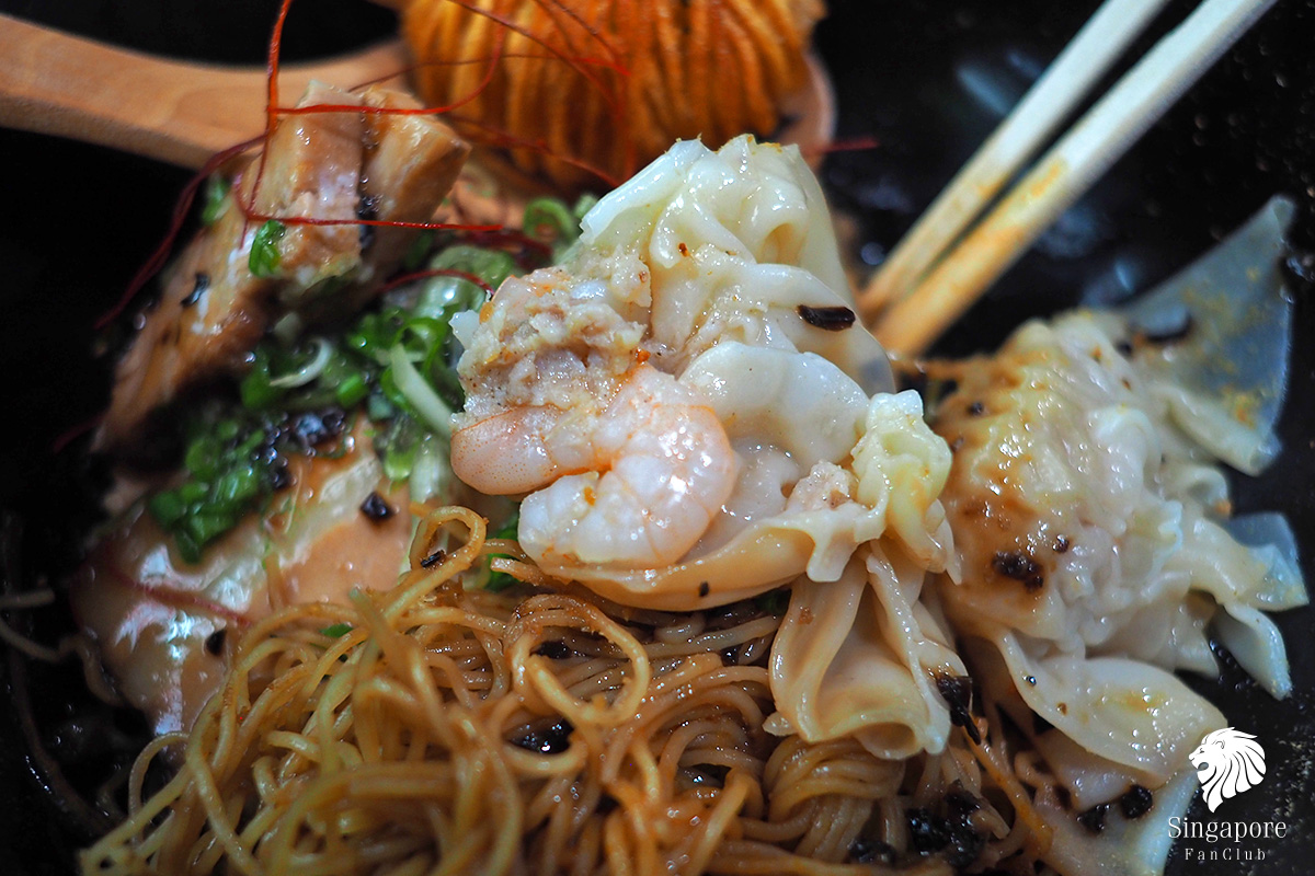 ความโดดเด่น : บะหมี่ชามนี้คือเส้นบะหมี่ไข่ (อย่างดี) คลุกเคล้า น้ำพริกเผาแบบสิงคโปร์ หมูชาชูชิ้นสวยนุ่มมากๆ 2 ชิ้น กุ้งทอด เกี๊ยวกุ้ง ไข่ออนเซน ราดน้ำปรุงรส โรยหน้าด้วยต้นหอม