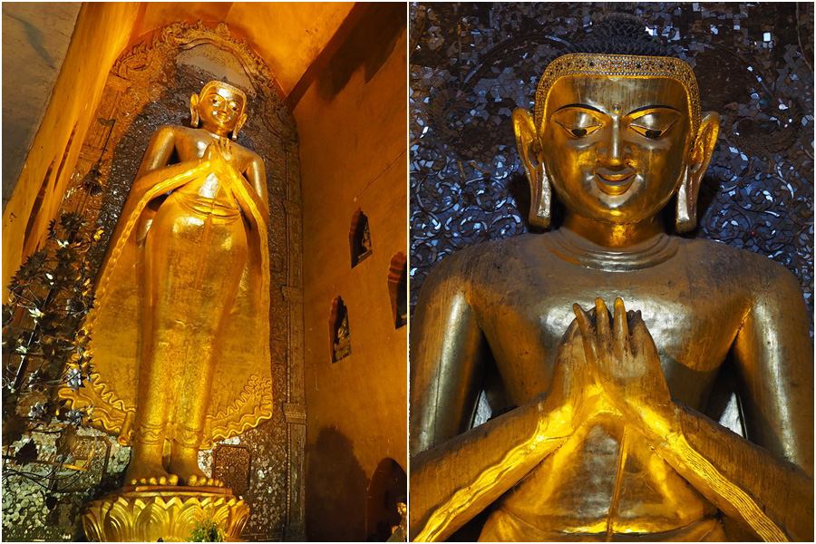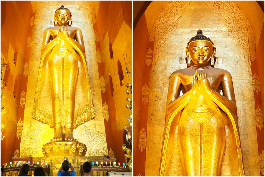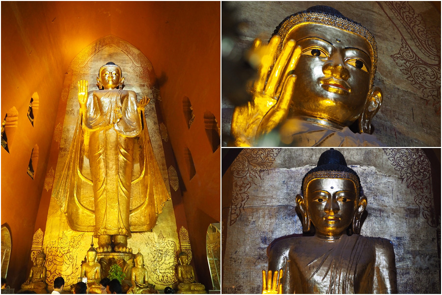 พระพุทธรูปทั้ง 4 ทิศภายในอานันทวิหาร ลักษณะของการวางพระหัตถ์แตกต่างกัน