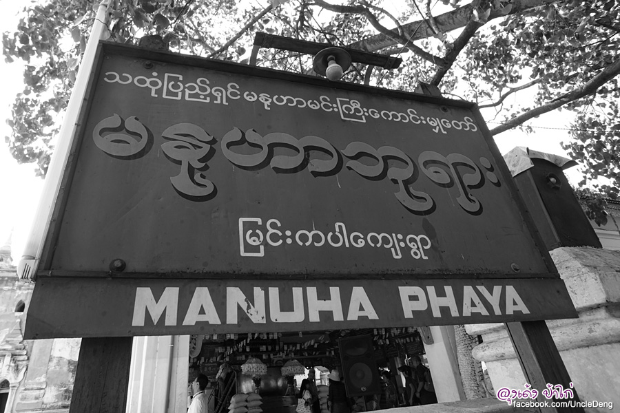 วัดมนูหะ (Manuha Temple) พระเจ้ามนูหะ เป็นกษัตริย์มอญที่พ่ายแพ้แก่พระเจ้าอโนรธามหาราช เมื่อครั้งที่พระเจ้าอโนรธามหาราชเข้าตีเมืองสะเทิม เมืองหลวงของชาวมอญ แล้วกวาดต้อนผู้คนมาที่พุกาม พระเจ้ามนูหะก็ถูกนำตัวมาเป็นเชลยที่พุกาม
