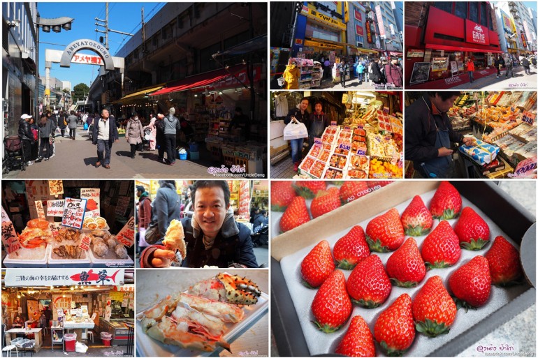 ตลาดอะเมโยโกะ (Ameyoko) ซื้อสตรอเบอรี่ กินขาปู ข้าวหน้าปลาดิบ ราคาประหยัด