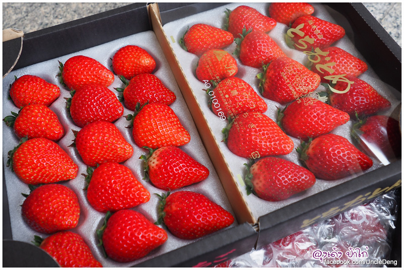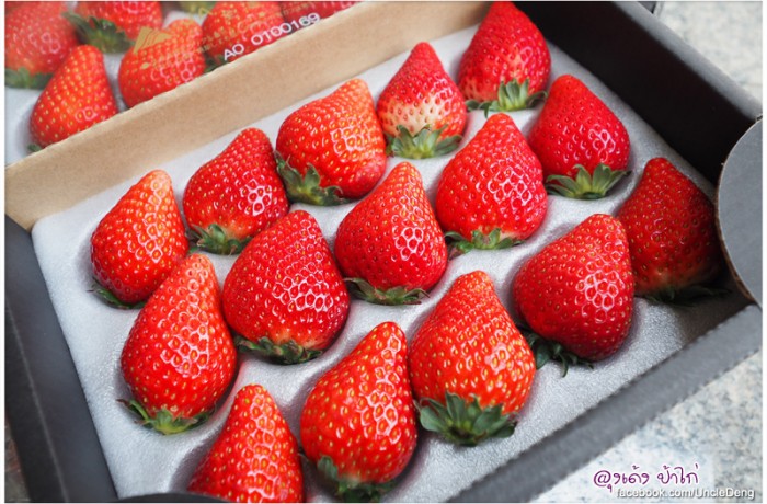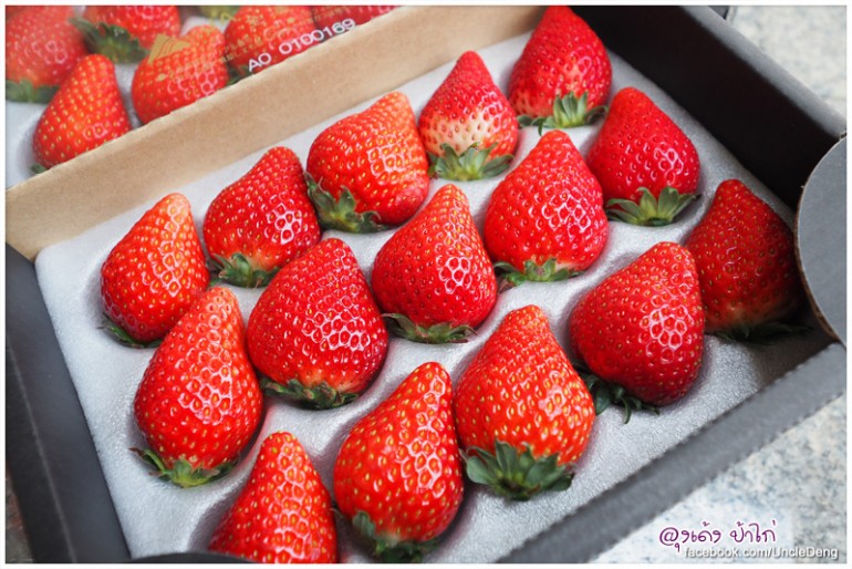 หมายเหตุ... สตรอเบอรี่กลับมาถึงบ้านเปิดดูยังสดใหม่ ที่กล่องพิมพ์คำว่า "Smile Monkeyd" น่าจะเป็นชื่อของสวนที่ปลูก กลิ่นความหอมลอดออกมาจากกล่อง เนื้อแน่น หวาน อร่อยมากๆ