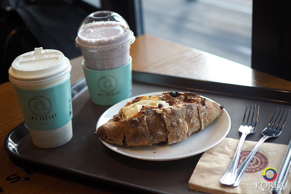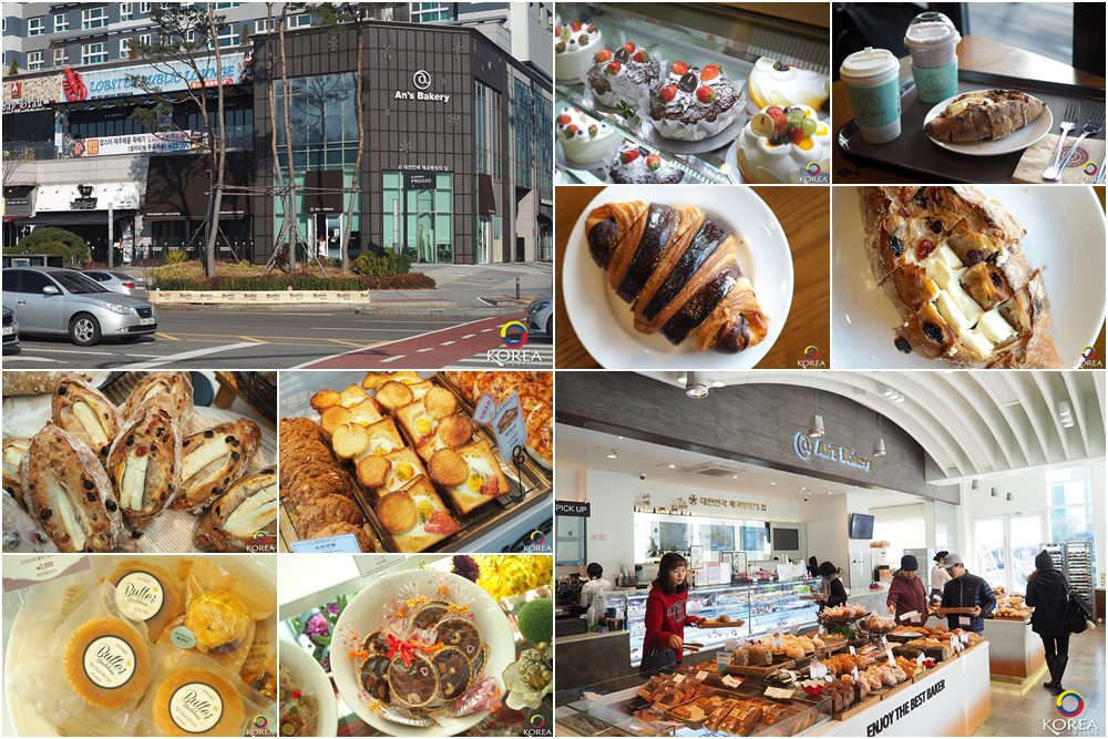 An’s Bakery ตั้งอยู่สี่แยก ถนน Central-ro ตัดกับ Convensia-daero สังเกตงาน หรูหรา โดดเด่นเป็นสง่า ขนมปังอบทุกชนิดอร่อยมาก