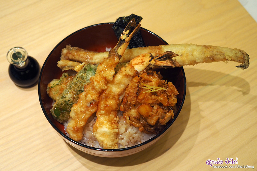 ที่ลุงเด้ง ป้าไก่ บอกว่าเมนูนี้คุ้มค่ามากเพราะว่า... วัตถุดิบหลักในเมนูนี้นำเข้าทุกอย่าง ปลาไหลทะเลญี่ปุ่นชิ้นขนาดนี้ กุ้งนำเข้าจากญ๊่ปุ่นตัวใหญ่ 2 ตัว หมึกชิ้น ผักรวมชุปแป้งทอด ชิคุวะ และข้าวสวยญี่ปุ่นพันธ์ดี และทอดด้วยน้ำมันงา และอร่อยที่สุดคือ ซอสในขวดเล็กๆ สำหรับราดบนเทมปุระ เป็นสูตรที่ Chef Teru คิดขึ้นเอง