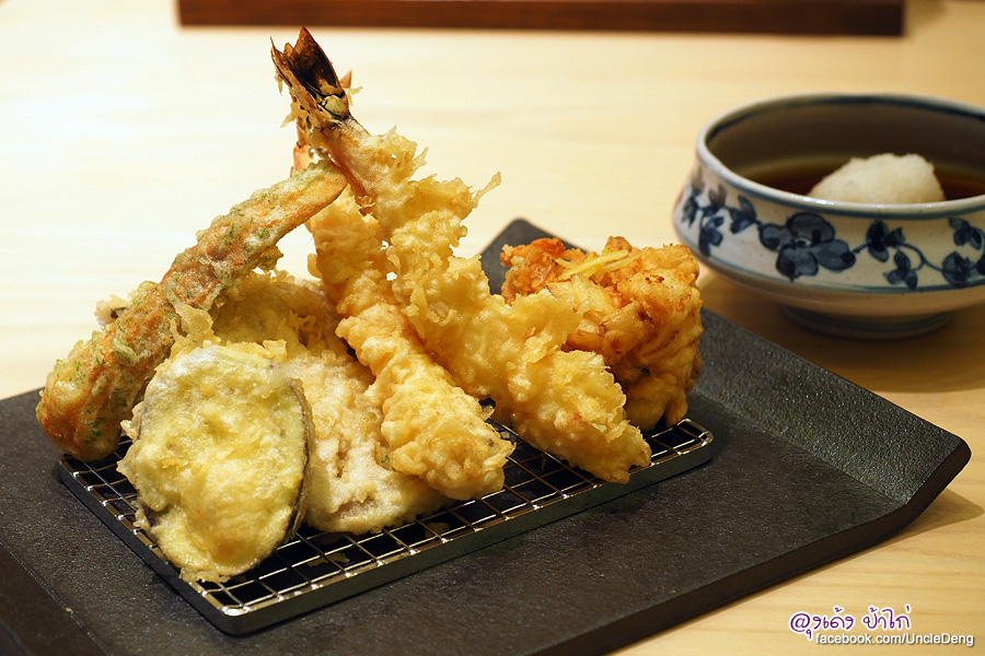 ติดใจเทมปุระ ก็เลยสั่งเพิ่มครับ Tempura Moriawase (เท็มปุระ โมรีอะวาเซะ) จานนี้ 290 บาทเท่านั้น ถูกมากๆ กุ้ง 2 ตัว ปลาหมึกคลุกผักรวมชุบแป้งทอด ชิคุวะ และผัก 2 ชิ้น