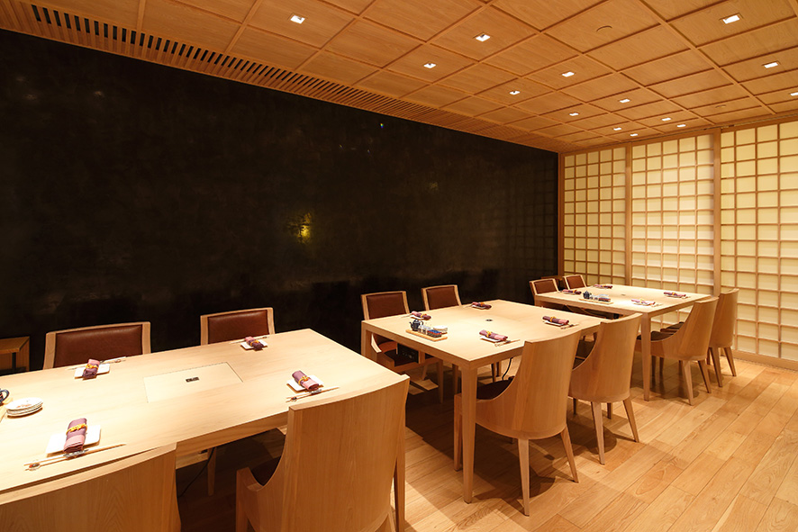 บรรยากาศภายในร้านตกแต่งสไตล์ญี่ปุ่นร่วมสมัย เน้นความเรียบง่าย เน้นสีเบจเนื้อไม้