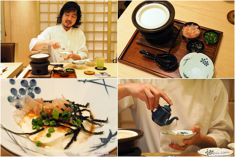 ปิดท้ายมื้อนี้ด้วย Atsu Atsu Tofu (เต้าหู้สดหม้อไฟ) 230.- เมนูเบาๆ แต่น่าทึ่งมากครับ ทำเต้าหู้สดๆ บนโต๊ะของเราเลย น้ำถั่วเหลืองใส่มาในหม้อไฟ 2 ชั้น ใบเล็กๆ ให้ความร้อนเวลา 15 นาที (ห้ามเปิดฝา) จากนั้นเราจะได้เต้าหู้อุ่นๆ เนื้อนุ่ม ตักใส่ชาม โรยด้วยเนื้อปลาโอตากแห้ง สาหร่าย ต้นหอม และใส่โชยุอย่างดีเล็กน้อย ... อร่อยแบบญี่ปุ่นแท้ๆ เลยครับ