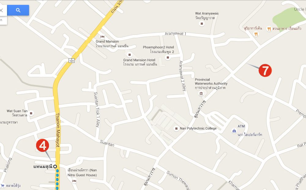 ที่ตั้ง : 246/6-7 ซอย 7 ถนนมหายศ อ.เมืองน่าน จ.น่าน ต.ในเวียง อ.เมืองน่าน