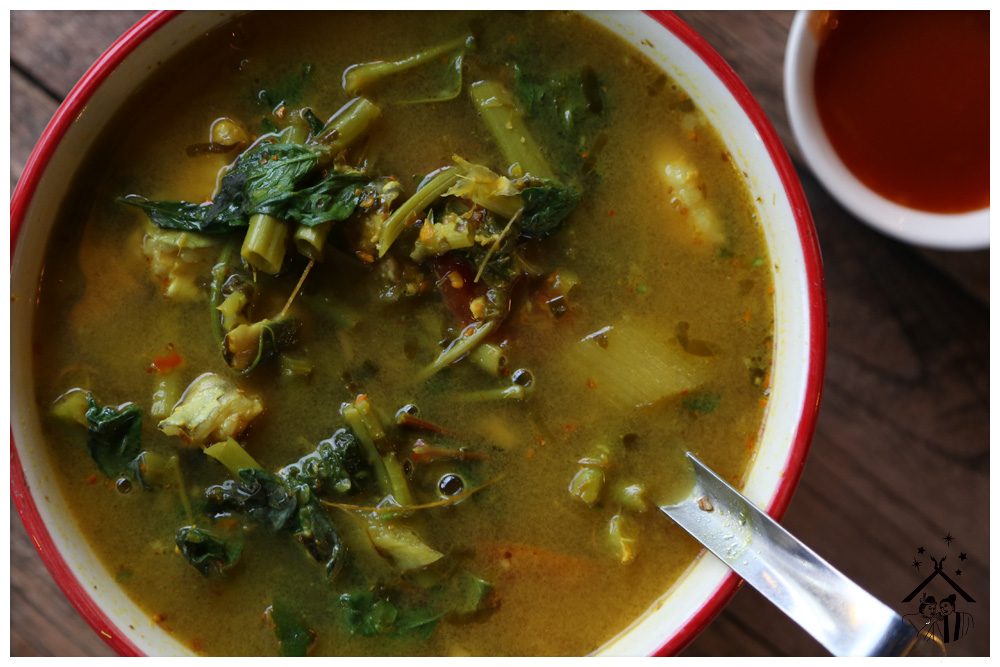 ทริปนี้ลุงเด้ง ป้าไก่ มาเที่ยวน่านหลายวัน อาหารพื้นเมืองก็กินไปหลายร้าน มองไปเห็นเมูนู ไข่เจียวกรอบ (100 บาท) สอบถามจากพนักงานต้อนรับได้ความว่าเป็นเมนูเด็ดของทางร้าน ก็เลยแจ้งไปว่าขอเมนูเด็ดเพิ่มอีก 2 รายการ นั้นคือ อาหารพื้นบ้านเมืองน่าน แกงส้มเมืองปลาคัง (100 บาท) และ เมนูหายาก หมูทอดปลาเค็ม (100 บาท) นี่คือ 3 เมนูที่ทางร้านภูมิใจนำเสมอ