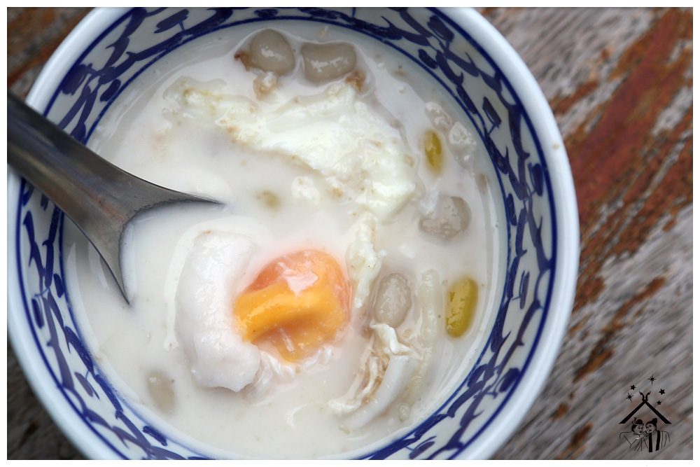 บัวลอยมะพร้าวอ่อนไข่หวาน เด่นที่ความหอมของน้ำกระทะ และตัวแป้งที่นุ่มกำลังดี หวานน้อย รสนุ่มส่วนของหวานอื่นๆ อยู่ในระดับมาตรฐาน.