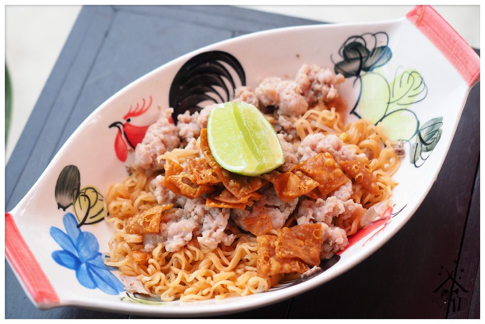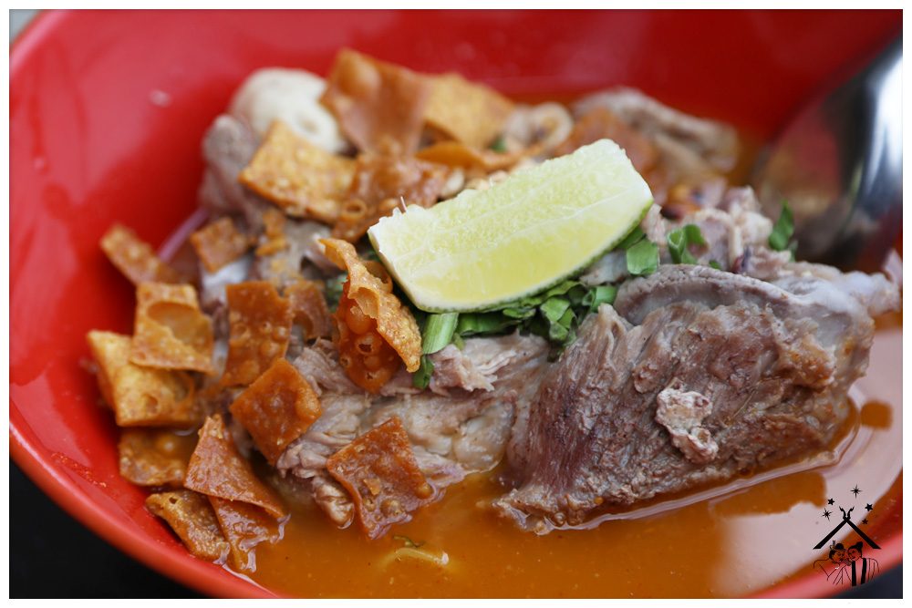 เมนูเด่นที่ห้ามพลาดของร้านนี้ ก๋วยเตี๋ยวหมูต้มยำ (30 บาท) เสริ์ฟร้อนๆ ในถ้วยกะลาใบใหญ่มีเข้ม เพิ่มสีสรรให้น่ากินมากยิ่งขึ้น รสชาติจัดจ้าน หอมถั่วลิสงที่คั่วที่โรยหน้ามาในชามกะลา สั่งเกี๊ยวกรอบ (15 บาท) มากินกับก๋วยเตี๋ยวต้มยำอร่อยยิ่งนัก
