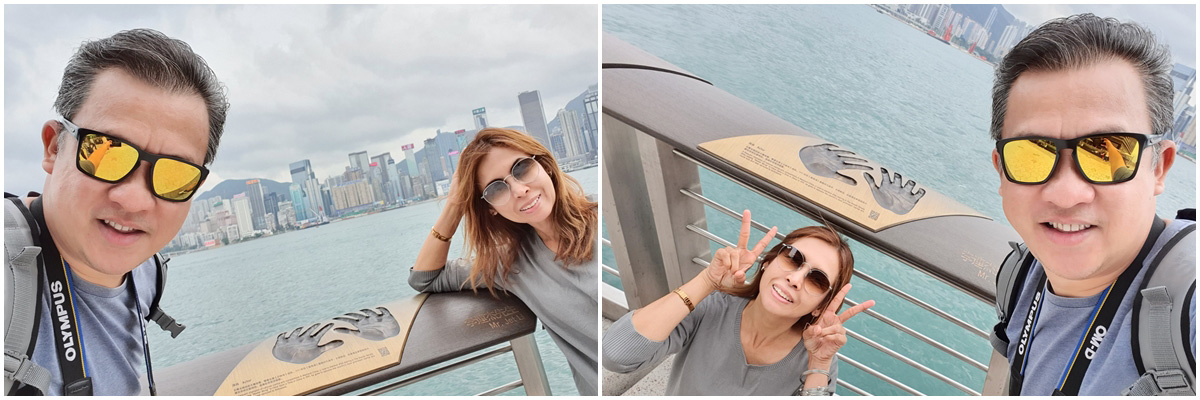 จุดเด่นของ Avenue of Star ฮ่องกง คือ จะมีรอยประทับมือ ของ ดารา และ คนดังในแวดวงบันเทิง เมื่อก่อน จะประทับบนพื้น (ส่วนตัวลุงเด้งป้าไก่ ไม่อยากให้ประทับบนพื้น เพราะมีทั้ง รอยผ่ามือ และ ชื่อ ให้คนเดินเหยียบย่ำ) แต่ตอนนี้ ยกมาไว้ บน รั้ว ตลอดทางเดิน รวมทั้งหมด 108 คนดังของฮ่องกง