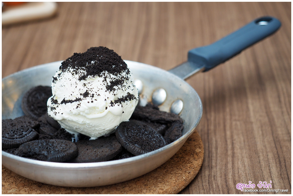 คำว่า Oreo ถ้าป้าไก่เห็น หรือลพี่เมฆ ภูผา เห็น ก็ต้องเป็นสั่งมากินทุกร้าน เมนูนี้ เสิร์ฟมาในกระทะร้อน รองพื้นด้วย Oreo ด้านบนวางไอศกรีมวนิลา โดยผง Oreo ทับอีกชั้น ลูกชาย 2 คนบอกว่าอร่อย