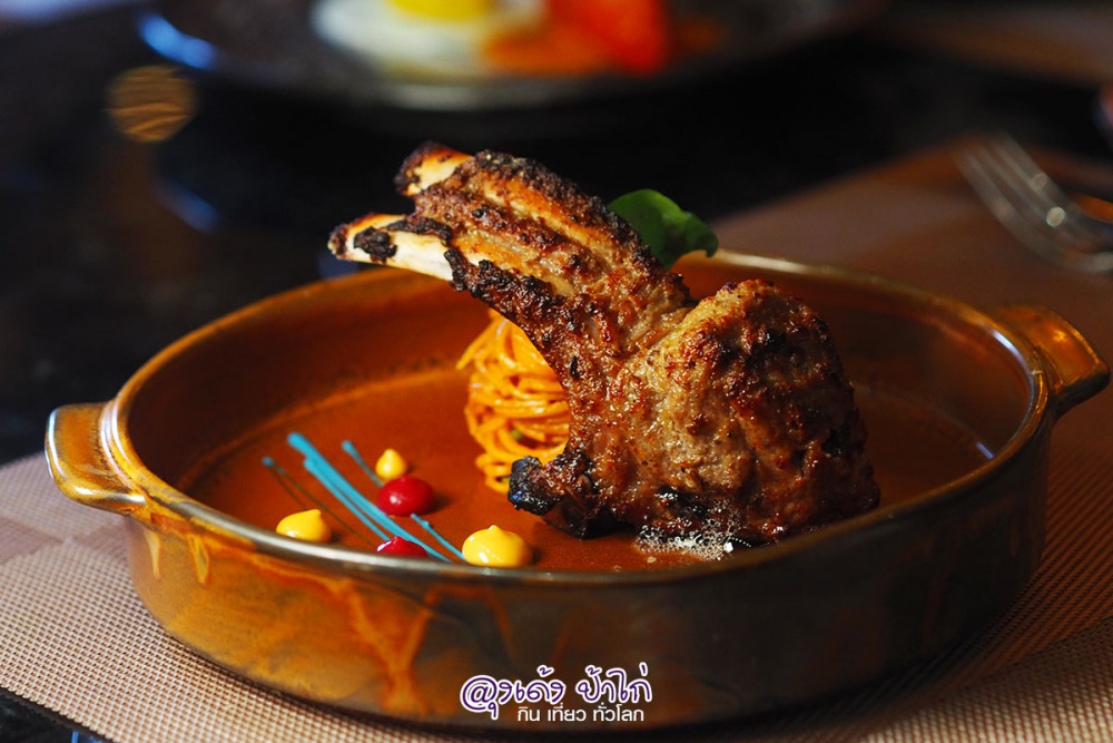 ซี่โครงแกะย่างเสิร์ฟพร้อมบะหมี่อินเดีย เนื้อแกะนุ่มมาก หอมเครื่องเทศ กินง่าย