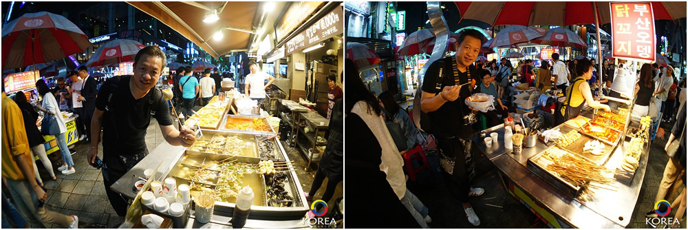 วันนี้ลุงเด้ง ป้าไก่ มาช่วงเย็น หลังจากไปชมวิวที่ Lotte Gwangbok Observatory เดินผ่าน นัมโพดง Nampodong Shopping Street ถนนช้อปปิ้งสุดชิค แล้วก็มาบรรจบกับ BIFF Square : ถนนอาหาร สตรีทฟู้ด แห่ง ปูซาน ถนนเส้นนี้ก็มีสินค้าแฟชั้นให้เลือกซื้อ แต่ที่มากกกว่านั้นคือ อาหารรถเข็นริมทาง เป็นที่ชื่นชอบของวัยรุ่นเกาหลี และนักท่องเที่ยวจากทั่วโลก