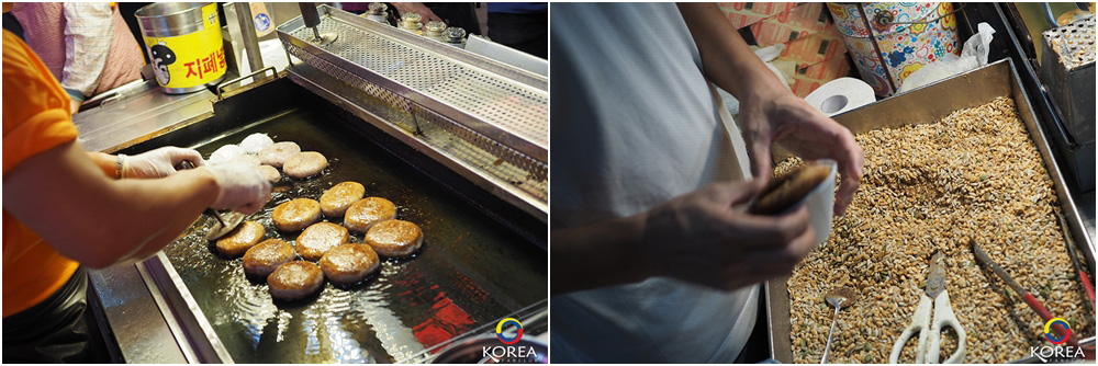 นอกจาก ซีอาสโฮต๊อก 씨앗호떡 ก็ยังมีอาหารกินเล่นอีกมากมายหลายชนิด ให้ลองซื้อหามาชิม ราคาไม่แพง