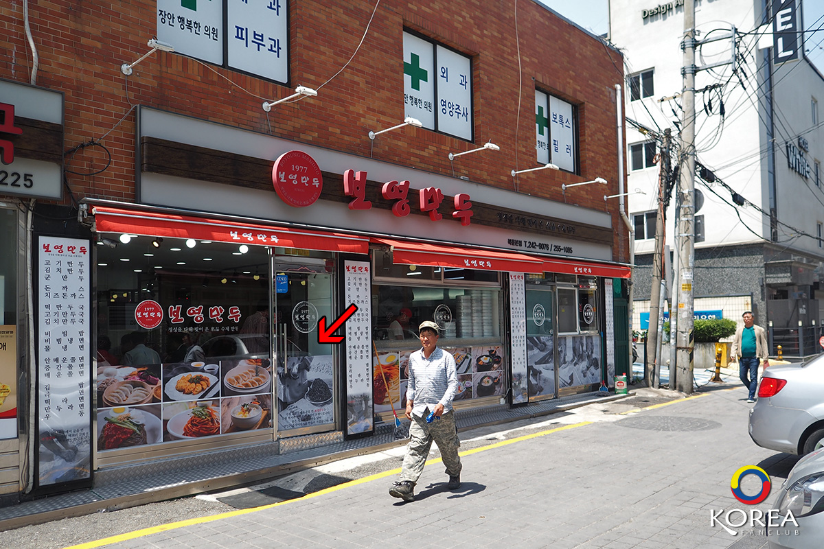 Janganman Gate -> ลงป้าย ถัดไป แล้วเดินย้อนกลับมา 2 นาที ถึงร้าน Boyoung Mandu