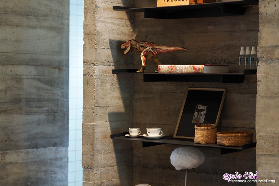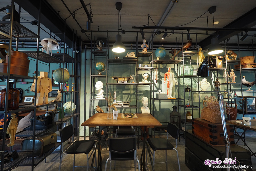ความโดดเด่นทีสุดของร้านคือ พิพิธภัณฑ์ส่วนตัวเล็กๆ ของงคุณสาธิต กาลวันตวานิช ผู้ก่อตั้งร้าน ชั้นวางเป็นโครงเหล็กเคลือบดำ โต๊ะวินเทจ ของสะสมใบ Old School ที่เราพบเห็นได้ในห้องเรียนย้อนยุค เช่น ลูกโลก พิมพ์ดีดโบราณ แบบจำลองกล้ามเนื้อร่างกายมนุษย์ หุ่นและรูปปั้น โคมไฟเก่า อุปกรณ์ทดลองทางวิทยาศาสตร์ ฯลฯ